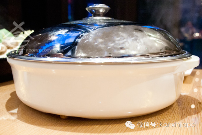 首先從它的鍋說起。用煤氣點火的火鍋已經太落後了,桌上放一個電子爐的也是不那麽美觀,很多餐廳現在都是在桌子中間挖一個“洞”把鍋子嵌下去,不用火鍋的時候在“洞”上加個蓋,大多時候這已經是最美觀的方法了。而翡翠火鍋酒家的做法,是把鍋放在這個白色無底的“鍋架”裏,直接放在桌子上。桌子怎麽會熱呢?原來整張桌子是一個內藏式 (Built-in) 電磁爐,開個開關中間那個區域會發熱,不用的時候,它就是一個天衣無縫的桌面。白色的鍋架本身不導熱,所以如果你不小心碰到鍋的側邊,也不會被燙傷。