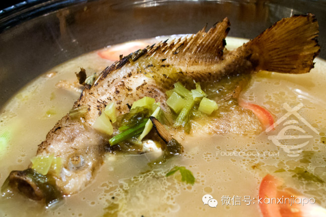這是潮州風味的酸菜魚,不是川菜裏的那個聽起來很酸其實更偏于辣味的酸菜魚。魚的選擇有羅非魚(Tilapia)、海鲈(Sea Bass)和草魚(Grass Carp);雖然烤魚的香味加鮮嫩的魚肉也是俘虜人心的美味,但它那加了酸菜和番茄後酸勁十足的魚湯才是它真正的亮點。$32.8-$38.8(草魚較貴)的價格,適合3-4人一起分享。