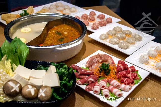 目前翡翠火鍋酒家的銷售模式還是單點,沒有自助。但它有推出適合兩個享用的9種套餐,價格在$28.8至$38.8不等。比如$38.8的冬炎海鮮火鍋套餐(有蝦、蟹、怡貝、蛤等等),$28.8的醉雞火鍋套餐和苦瓜火鍋套餐(這個好小衆,完全可以看出誰對苦瓜有真愛),還有上圖$32.8的肉類火鍋套餐(不包括4盤丸子和腐皮)。