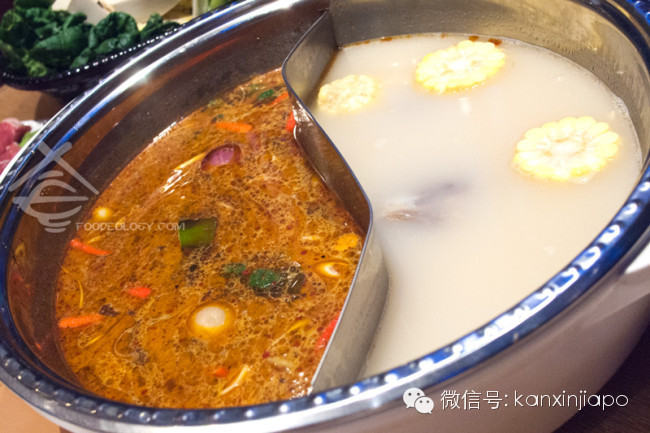 翡翠火鍋酒家的湯底有包括豬骨湯、麻辣湯、冬炎湯、雞湯等7種湯底。所有的湯底都是在上湯的基礎上再加入各自的特色材料。比如當天爲食主義試的豬骨湯是熬制了12個小時後的雪白濃湯,而冬炎湯裏的辣椒是廚師在泰國嘗試了各種不同的泰國辣椒以後親自帶回新加坡的精選辣椒。爲食主義在食材下鍋前搶先試了一下原汁原味的湯底,客觀地說,這家翡翠的火鍋湯做得確實比其它家翡翠餐廳的火鍋湯更爲鮮美。