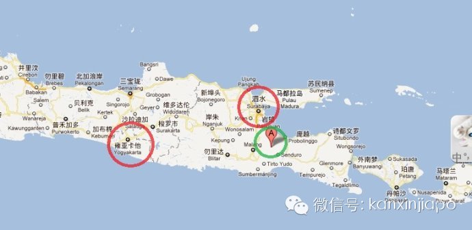 位置示意:雍亞卡他 = 日惹。綠圈裏面是Bromo火山。火山上面紅圈圈是泗水。可以根據自己時間長短來安排路線。