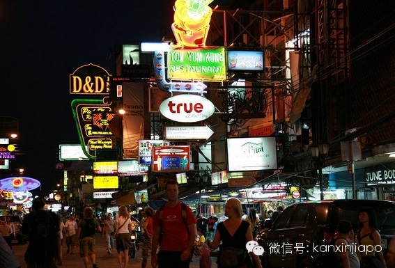 如果還沒有熱鬧夠,隆重推出遊客聚集區:考山路。你可以把這裏理解爲曼谷的酒吧一條街,充斥著各式小吃和紀念品商店,還有泰式按摩,是一個非常happening的地方。你可以看到一堆老外在這裏按摩。價格也很便宜。比如半小時泰式按摩100b~(自己覺得超舒服,當時超想把爸媽帶來這裏按一按!)