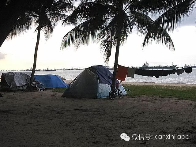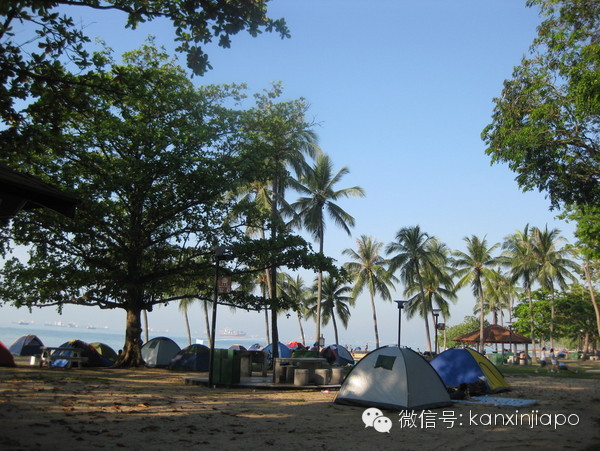 要看日出,最佳的地點應該是在東海岸,Changi Beach和Pasir Ris Park都面朝Ubin島,日出就只有那一條線。而准備露營的裝備:有帳篷,防潮墊,營燈和一條小毛毯也就足夠了,睡袋著實沒有必要。周末許多人都會來露營,而周圍區域也都有路燈,安全是有保障的。沙灘幹爽而平整,沒有蚊子,卻又小螞蟻,但沒有看到蛇,不知道它們在這樣的炎熱冬天會不會冬眠,不過帶著蚊不叮也算有備無患。露營區域有避雨的涼亭,如果足夠倒黴,碰到一年不遇的大暴雨,想不讓帳篷進水的辦法還是去涼亭把。