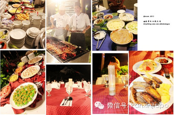 晚餐是遊池邊的燒烤自助餐,特別爲我們這個團隊准備的,內容不是很多,但是每樣味道都還不錯,累了一天,不管三七二十一的吃下了一肚子的肉,之後又在曬了一天的,已經像溫泉一樣的泳池裏舒舒服服的泡了大半天,疲勞頓消,美美的睡上一覺。