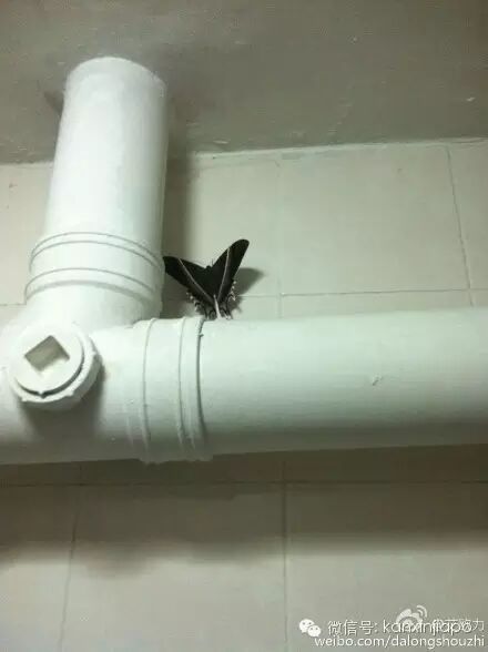 今早在樓道拍到的一隻 黑色的 大 蝴 蝶