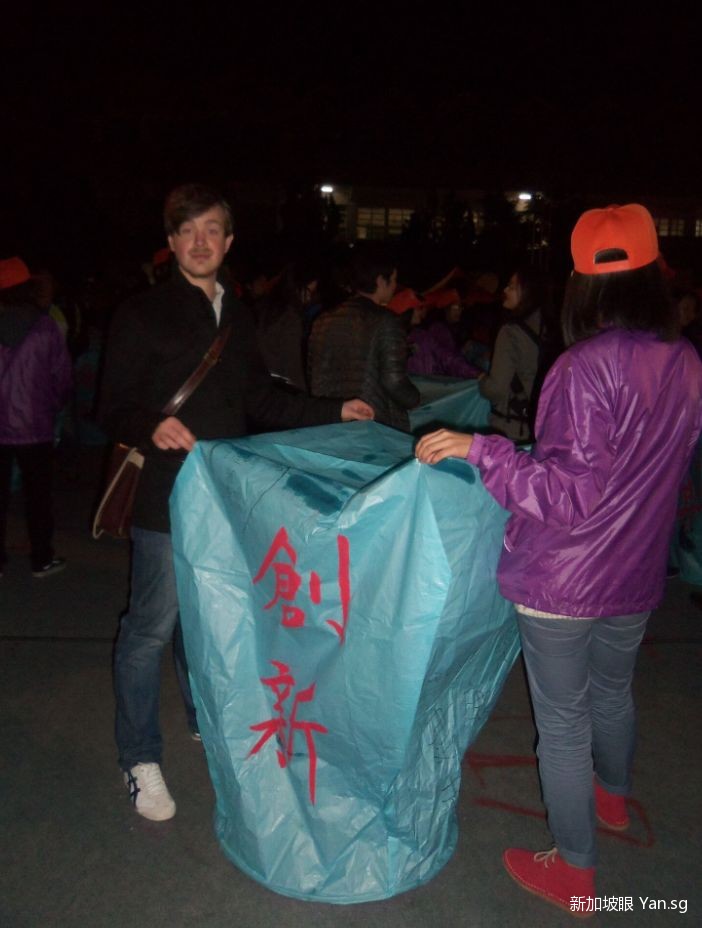 他感受過平溪的夜晚,和大家一起在郊外點上“創新”的孔明燈。