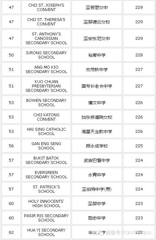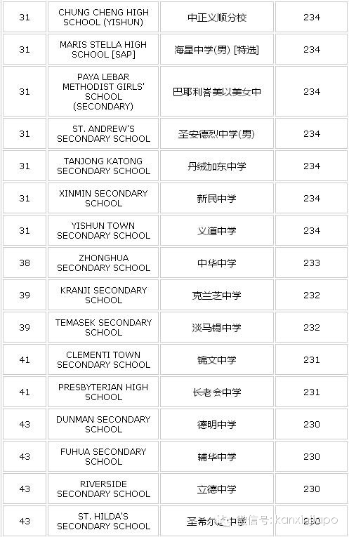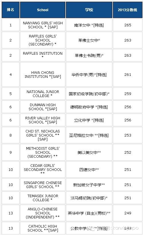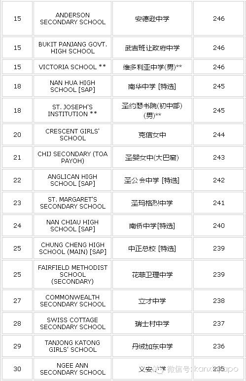 有**標志的是既有直通車項目又有普通的O水准項目的學校。表中的分數線是他們O水准項目的分數線。