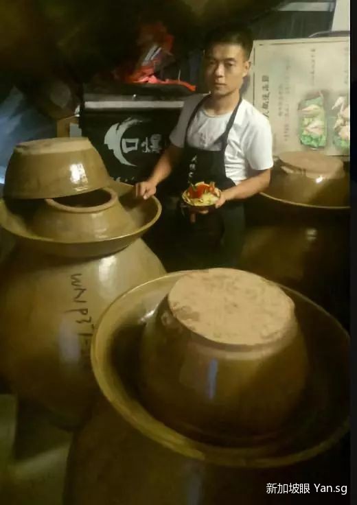 其實,老板爲了還原正宗的重慶味兒,也曾在新加坡到處尋覓泡菜壇子。居然還真給他找到了,中巴魯附近,有一家賣泡菜壇子的,三百新幣,也就是人民幣1500塊錢一個!