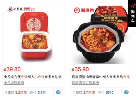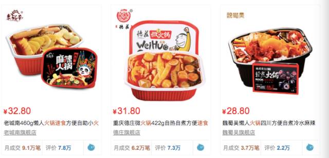打開某貓才發現懶人火鍋的月成交量最高可達9萬,而且很多知名的火鍋連鎖店像海底撈、德莊以及國內火鍋界的網紅小龍坎也都出了同名品牌的懶人火鍋。
