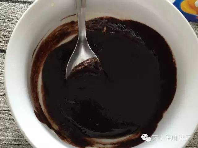 巧克力糊的做法也很簡單。只需要把55g左右的巧克力和30g的奶油放在一起,在微波爐叮一分鍾,攪勻就可以了。