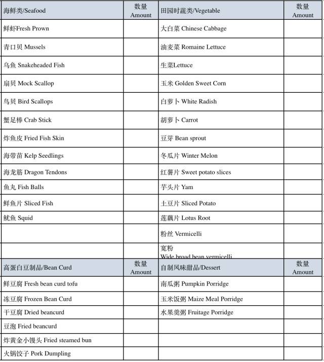 各種精品火鍋菜式,包括各種牛羊肉、海鮮、精致丸類、蔬菜和甜品等!