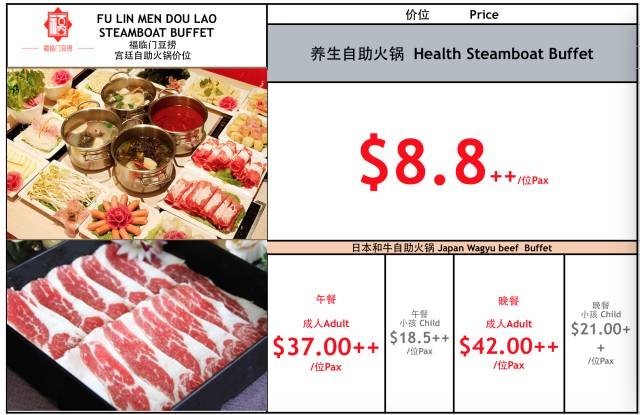 爲配合此次金湯節,福臨門豆撈把原價$27.00++/位的自助餐,調整爲午餐S$8.8++/每位,晚餐S$12.8++/每位(僅限涮品)!80多個品種的涮品,讓你一次涮個夠!