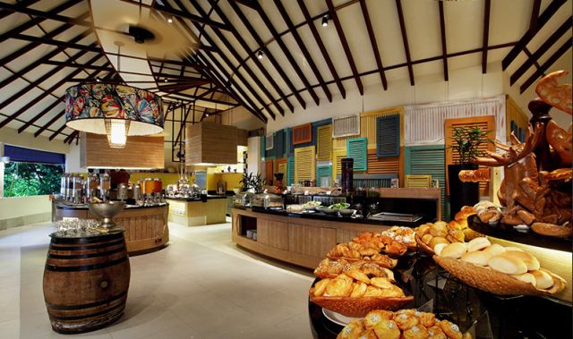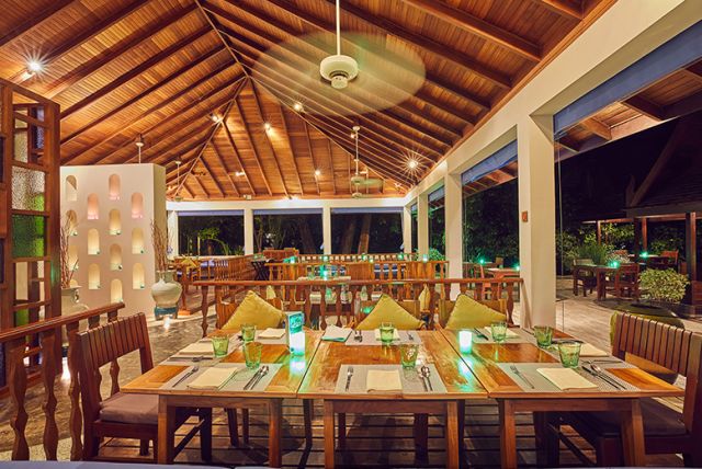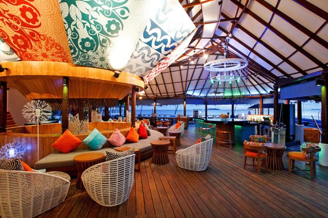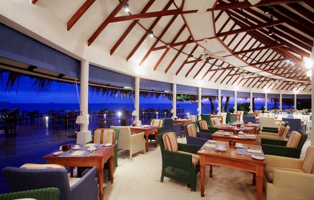 餐廳酒吧Reef海島餐廳,屋頂用茅草搭建,可以俯瞰海灘