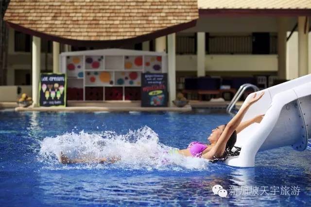 度假村除了無敵海景遊泳池,可以盡享浪漫之旅,還有供家庭親子遊樂的水上滑道。讓您和孩子都玩得不亦樂乎。