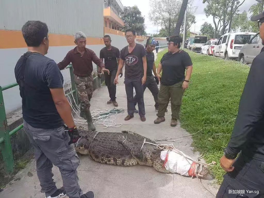 最後這條鳄魚還是被新加坡國家環境局(NEA)給救了出來。不過爲了防止鳄魚傷人,環境局決定給它來個五花大綁。