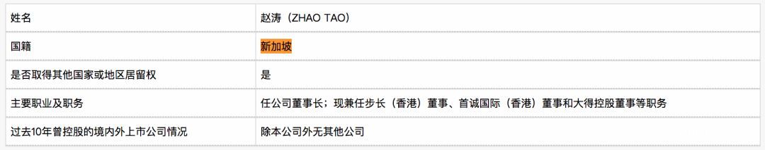 根據步長制藥2018官方年報信息,趙濤現爲新加坡國籍。