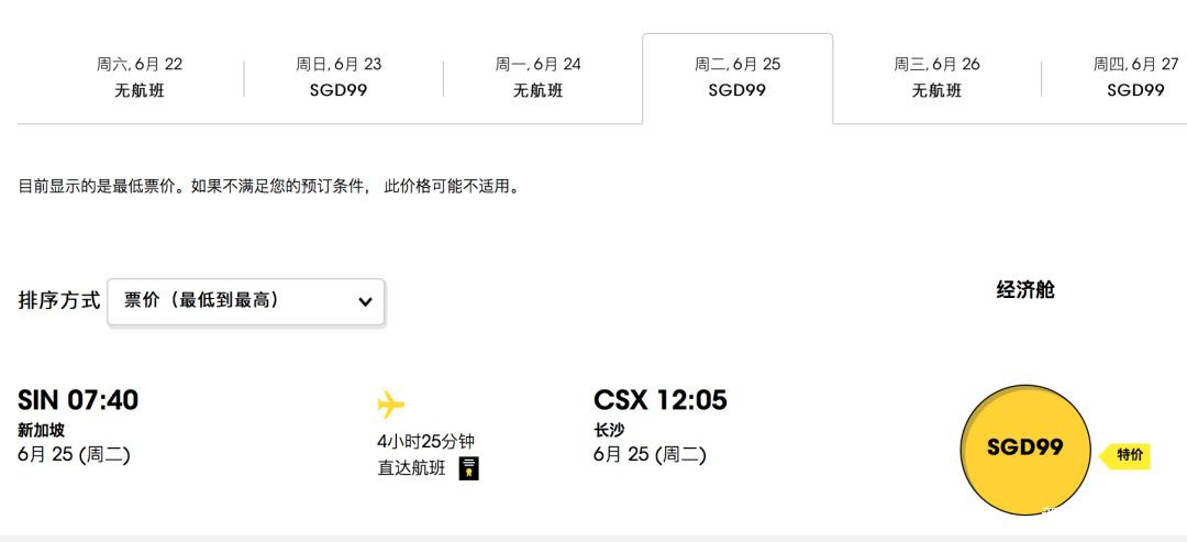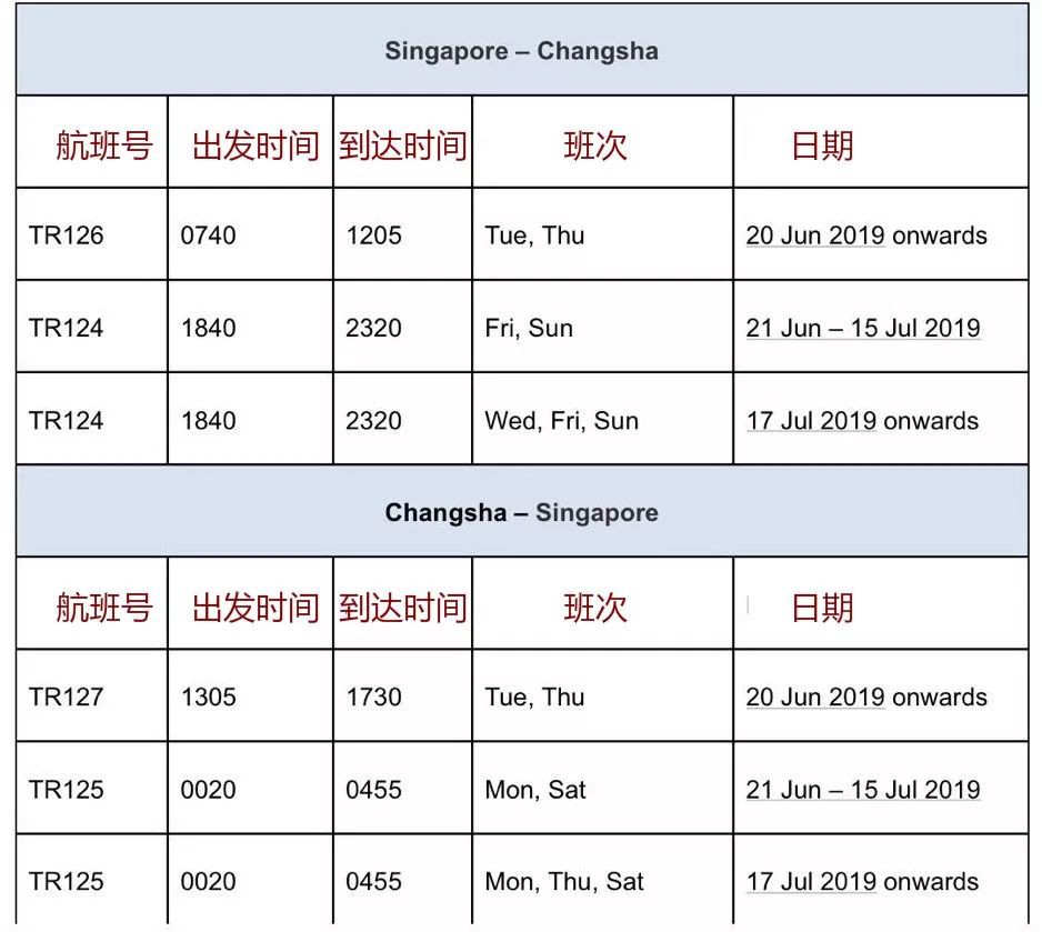 新加坡往返長沙的航班6月20日首航,去程最低價是99新幣。
