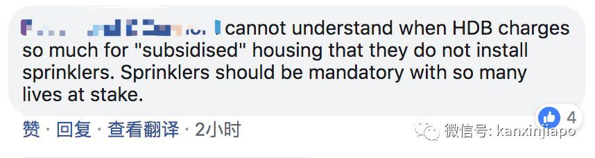 我真是不理解爲什麽組屋收了這麽多“補助津貼”,卻不裝防火灑水裝置!