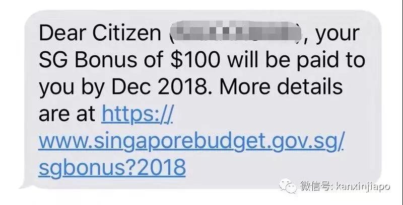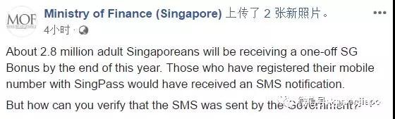 1)政府發送的簡訊會顯示發送者是“SG-Bonus”;