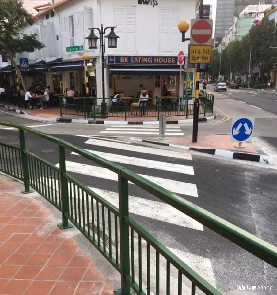 最近,網上瘋傳一張照片。在新加坡沙球勞路一道的斑馬線兩端,竟然都設有柵欄!