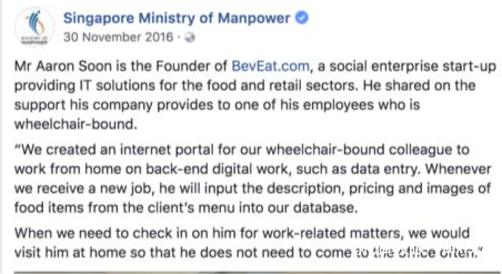 活動目標:利用現代信息編程技術,使殘疾人士融入到新加坡經濟裏,提高他們賺錢能力