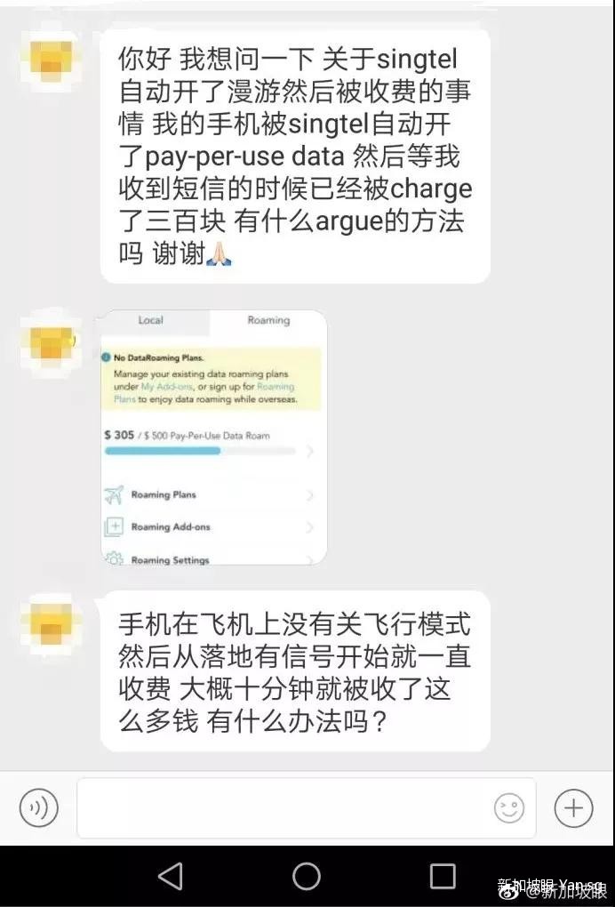 有網友向我們求助,說自己剛到回中國下飛機後,SingTel自動開了漫遊,然後得知要交三百塊,想問問大家有沒有辦法可以和SingTel講理,免去這費用。