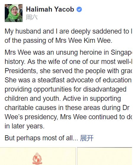 總理李顯龍及其夫人“致以最沉重的哀悼”,稱贊“她待人和善、溫柔,表現了對人民的深切關懷和關注。”