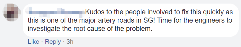 (向那些很快修複道路的工作人員致敬,因爲這是新加坡主幹道之一!是時候讓工程師調查問題的根源了。)