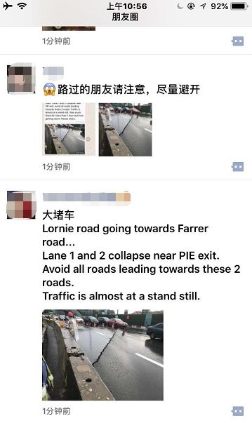 今天早上,新加坡羅尼路(Lornie Road)一處路面迸裂!造成嚴重交通堵塞!