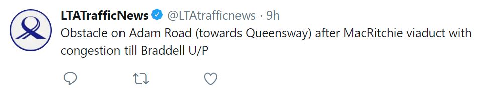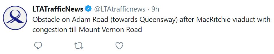 在早上8點左右,陸交局發現在亞當路(Adam Road)前往女皇鎮的路段出現裂痕,導致路基下降,有兩條車道受到影響。