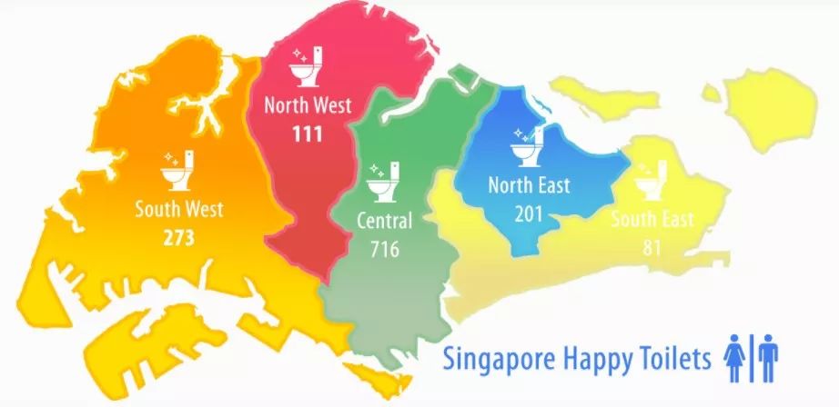 新加坡總共有586間廁所獲得五星,637間廁所獲得四星,以及217間廁所獲得三星。而新加坡中央區域五星級廁所密集度最高的地區,共有376間。