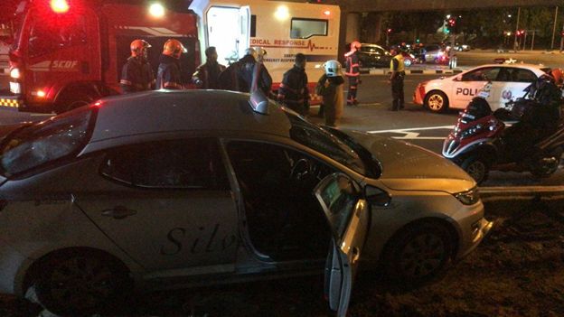 其中一名22歲男生被困在德士裏,後來被新加坡民防部隊救出。