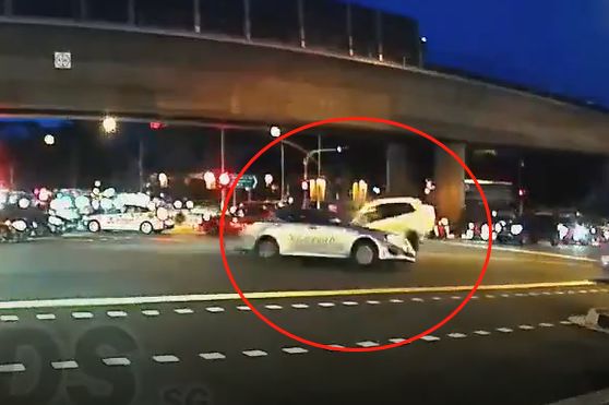 當時,載著4名國大學生的銀色德士正在路口轉彎。
