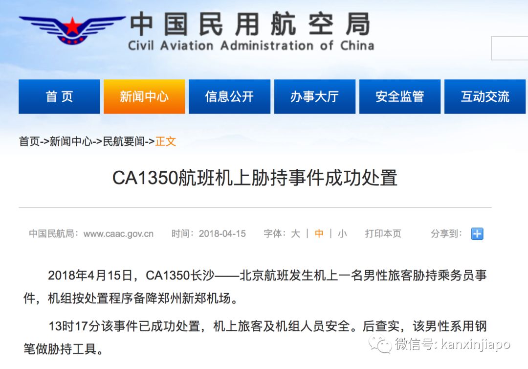 河南省公安廳隨後發布通報,41歲犯罪嫌疑人徐某,以前有精神病史。在飛機上是突發精神疾病,才脅持乘務員。