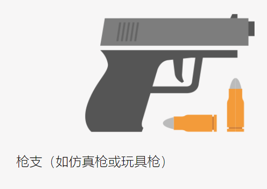 不光仿真槍,氣槍是明確的違禁物品,連塑料水槍也是哦,即使他長得和真槍完全不像,但是新航還是一本正經的將他排除在外,畢竟安全最重要!