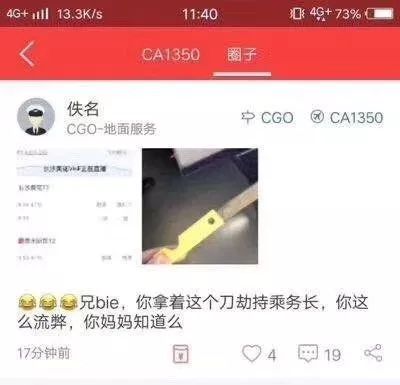 從上午開始,中國國航飛機被劫持的事情轟動航空界。在調查結果出來之前,有人說挾持人質的凶器是把美工刀: