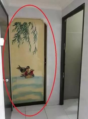 經過仔細檢查,發現房子裏有兩間非法隔出來的臥室。一間用的是鴛鴦屏風: