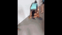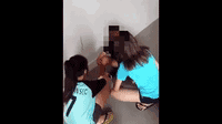 但是說著說著,兩名身穿藍色上衣的女生便開始出手——掌掴、腳踩。