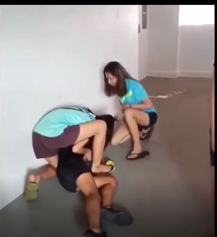 這起學生霸淩事件發生在2月15日,地點是惹蘭蘇丹第19座組屋。只見畫面中,三名女生先是蹲坐在組屋樓層裏談論著什麽。
