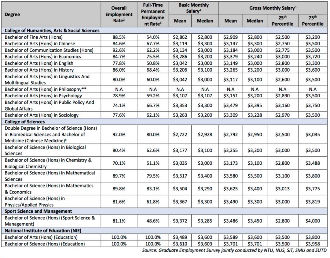 藝術與社會科學學院是國大人口最多的學院,畢業的學生大多拿藝術學位,也就是榜上薪水較低的人群。這麽說,是他們拉低了整體薪金水平?(請腦補你麻麻在你耳邊念叨“學好數理化blabla……”)