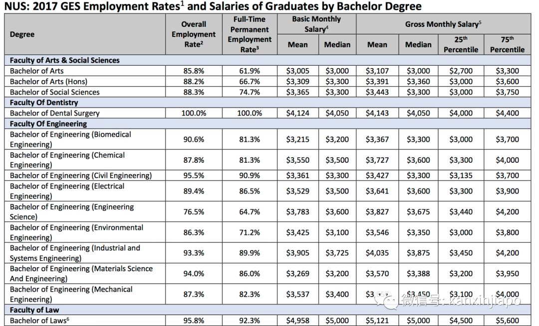 雖然中位數如此之高,但不同專業的薪資差異巨大。拿NUS的數據爲例,持有藝術學士學位的畢業生薪資中位數和平均數均爲3000新幣,而法律系的薪資中位數卻高達5000新幣!