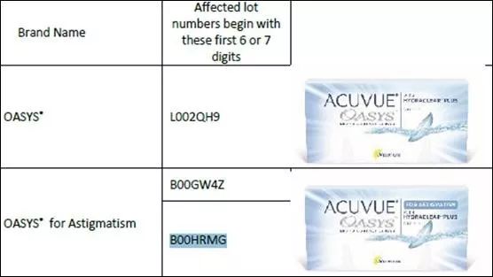 來看看有那3款需要被召回的隱形眼鏡,OASYS系列型號L002QH9兩周抛棄型隱形眼鏡、ACUVUE OASYS系列型號B00GW4Z/BOOHRMG(散光用)兩星期抛棄型隱形眼鏡。