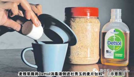 今年4月6日一大早,老顔泡了一杯麥片蓋上,就先去客廳餵寶寶喝奶。然而就在這時,阿麥已經打算加料!她拿出了消毒液,直接往老顔的麥片裏倒了一小杯,還像模像樣地蓋上了杯蓋。