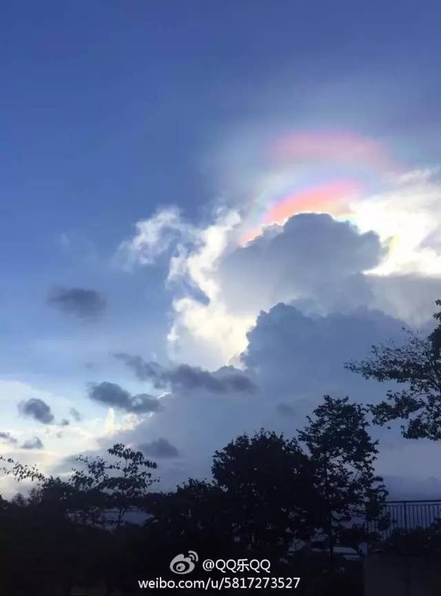 七彩雲是由于雨後大氣富含水分,陽光折射所産生的一種大氣現象。在合適的天氣狀況下,太陽光正好和雲構成一個合適的角度,太陽光通過雲彩時,通過折射和反射作用,上空雲彩內的水汽將太陽光譜分離,從而散射出七色光芒。