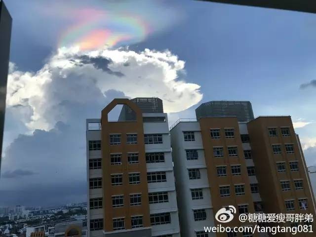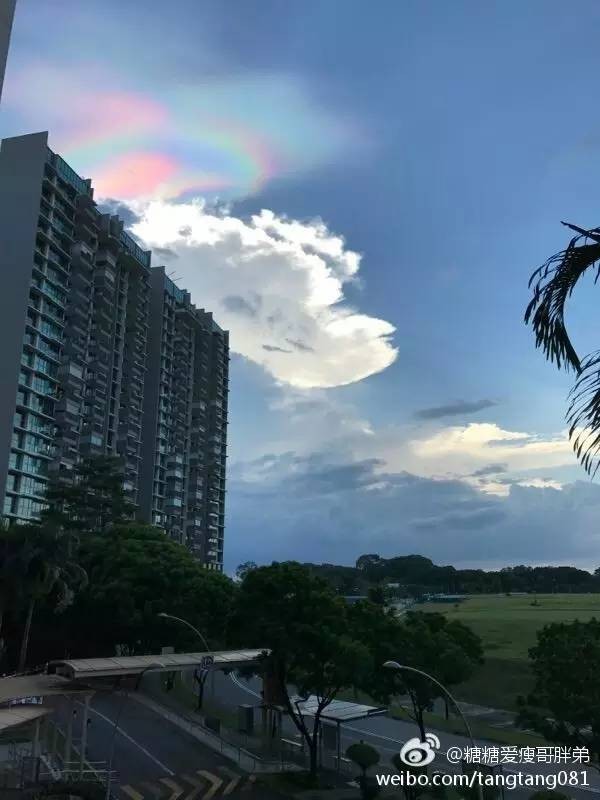 還沒看夠前些天朋友圈裏刷屏的粉紅色新加坡,今天新加坡天空又帶來了新的驚喜,當當!七彩雲!