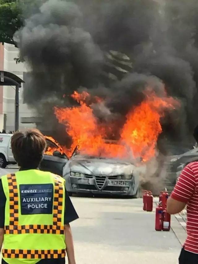 ▲好在並沒有人受傷。到了5點左右,這輛著火的Alfa Romeo轎車明火已經被撲滅了~