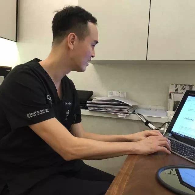 ▲哈哈,醫生太帥,他打電腦時被我偷拍(很明顯皮膚專科醫生的皮膚的確很白)