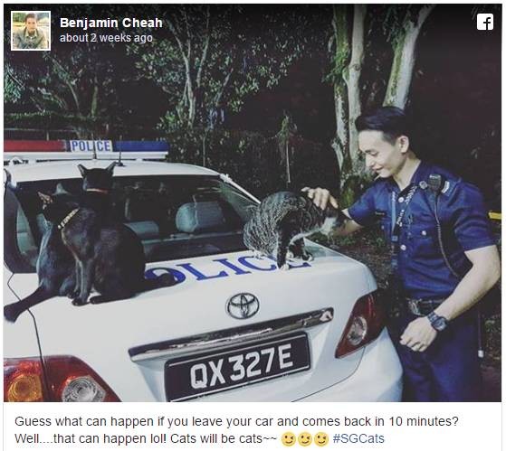 今年的新加坡警界好有愛。前幾天我們在介紹偷心美女警察時,有提到過的英勇救貓帥蜀黍,今年25歲的警長謝福榮,只把警車停在路邊10分鍾而已,猜猜發生了什麽事?