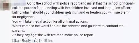 現在,我的問題是,我應該怎麽處理這種情況。警局的報案記錄,是關于Fatimah的案件,不是Jeelani的。我應該再報一次案來對付那些男生嗎?看起來,學校對這件事並沒有什麽作爲,我想要趕快解決我孩子被欺負的事情!”