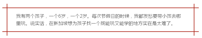 另外,我們還得到了一個重要消息。每個周末,這裏都會舉辦小新哥哥“華語音樂故事班”。在課程中,小新哥哥將會現場用音樂伴奏,以音樂劇的形式表演華語故事。讓孩子們在歡樂的氛圍裏愛上華語,學習寶貴的做人道理。每次課程結束後,孩子們還可以直接免費在小人國玩一個小時。一邊玩,一邊學,聽起來確實不錯。